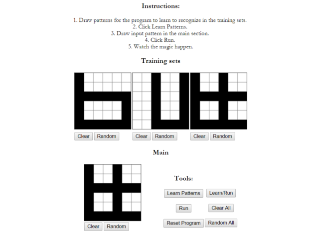 This is a web application developed to test the capacity of bitmaps recovery by Hopfield Neural Networks.